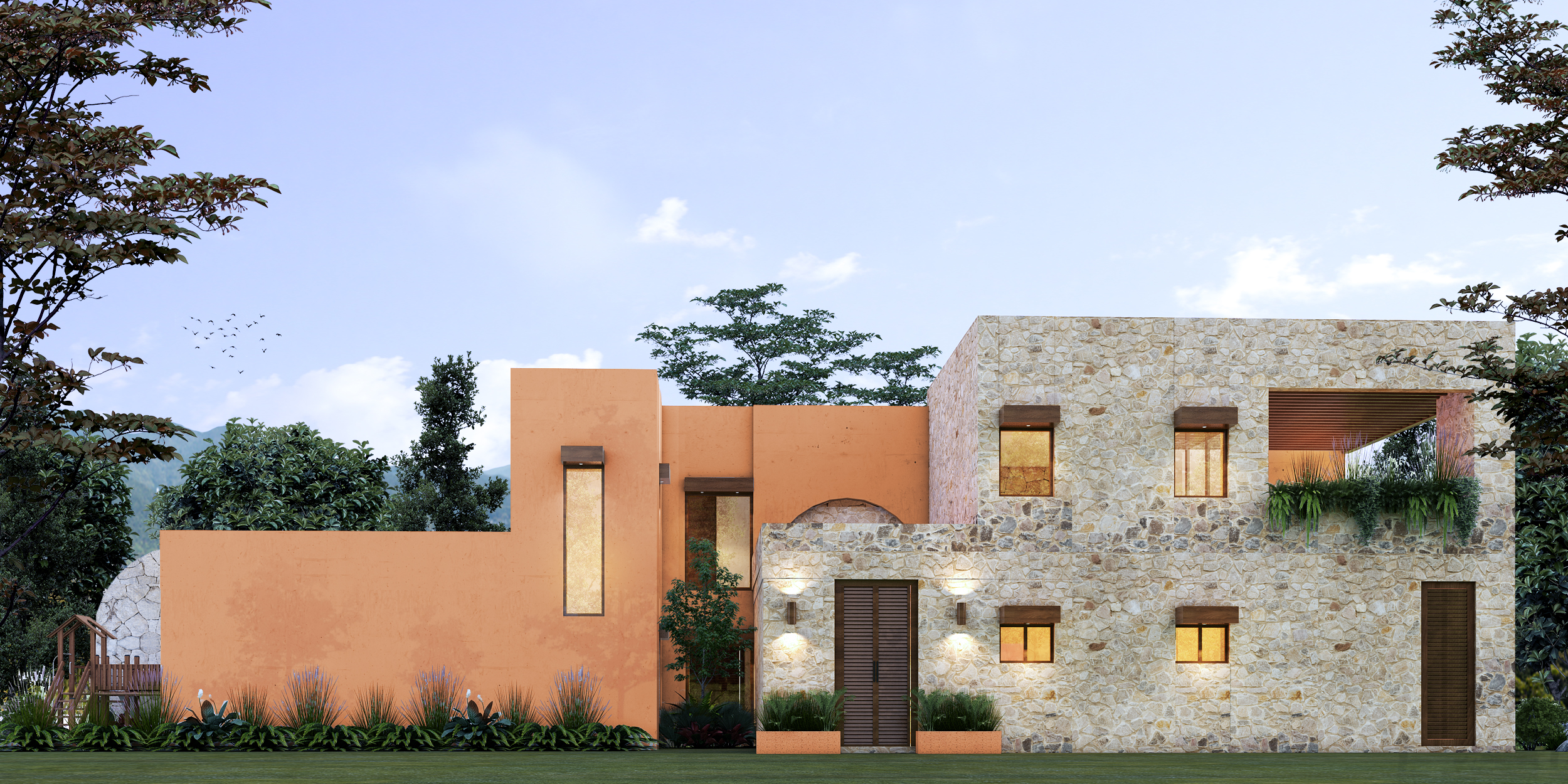 Acabados de Piedra, Cantera, Madera y otros orgánicos logrando una fusión entre tecnlogía y naturaleza.