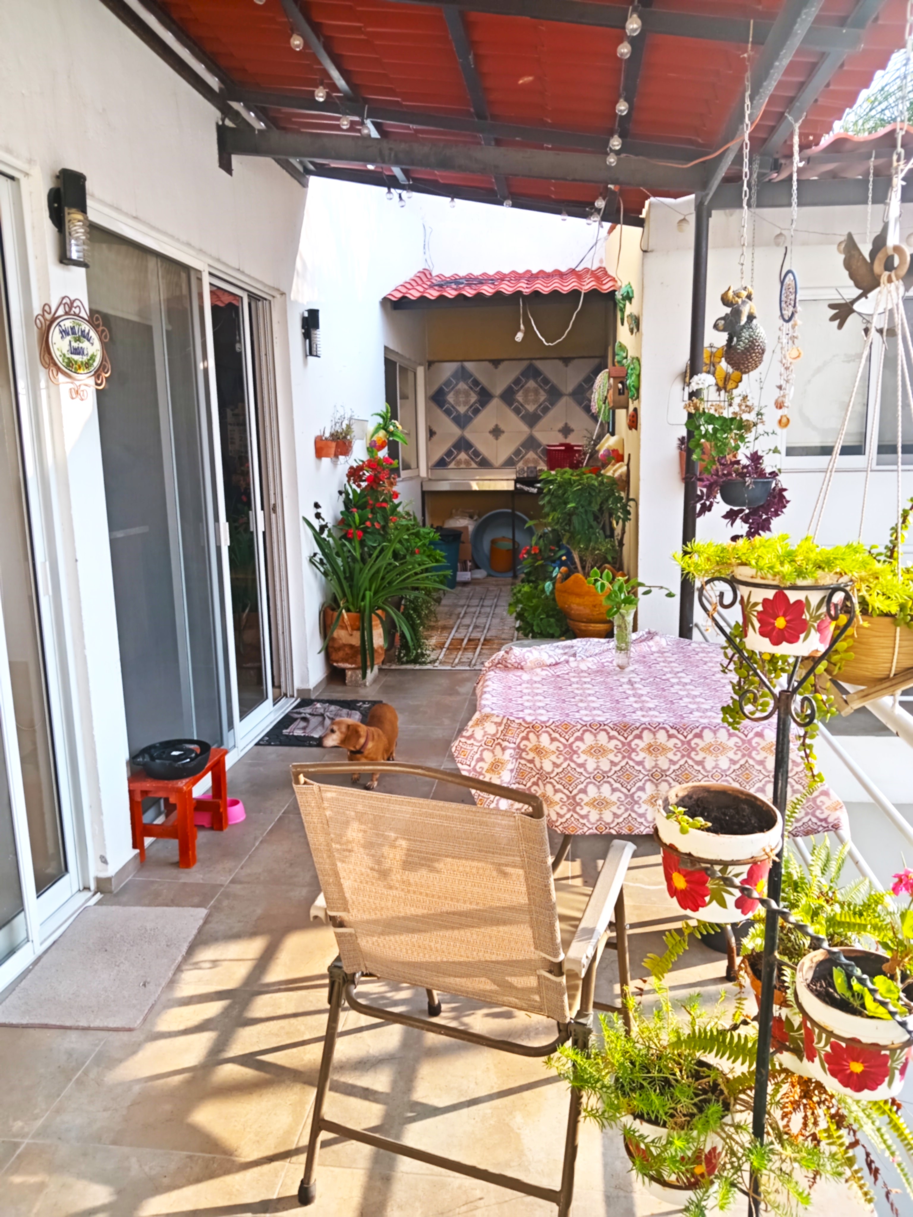 Jardín con área para convivir en familia.