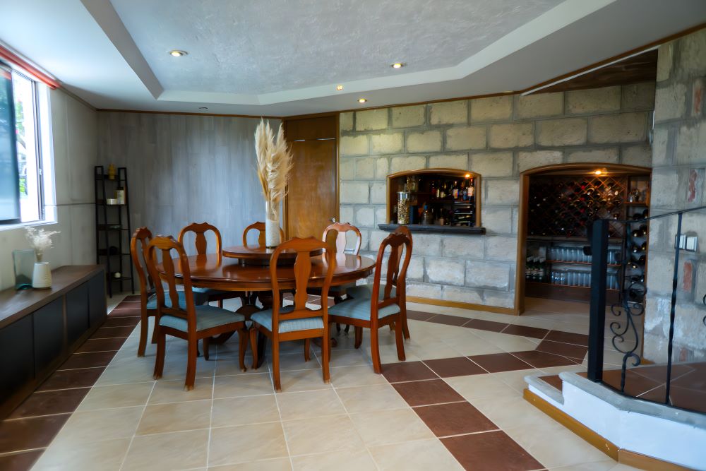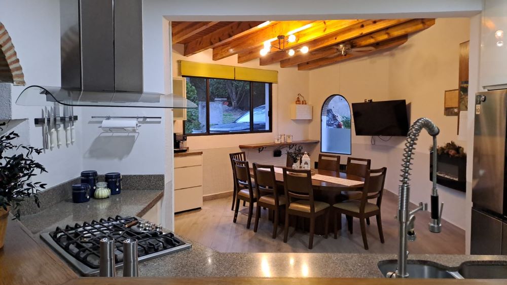 con horno de piedra, Alberca techada, Gimnasio, Taller, Huerta de árboles frutales,