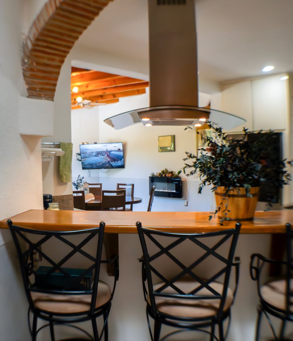 Espacios casa principal: Vestíbulo / medio baño, Despacho/cuarto de lectura, Cocina equipada con barra/ antecomedor, Sala comedor formal con cava y medio