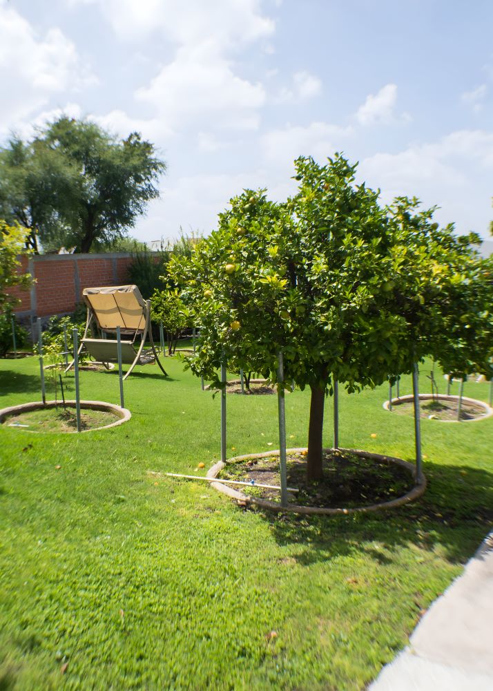 en jardines con aguas tratadas 2 tanques de gas estacionario con capacidad de 300 lts cada uno Cisterna para riego de 27 mts 3 Cisterna para uso doméstico de 18 mts 3 Riego por goteo automatizado en hortaliza Riego por goteo en árboles frutales
