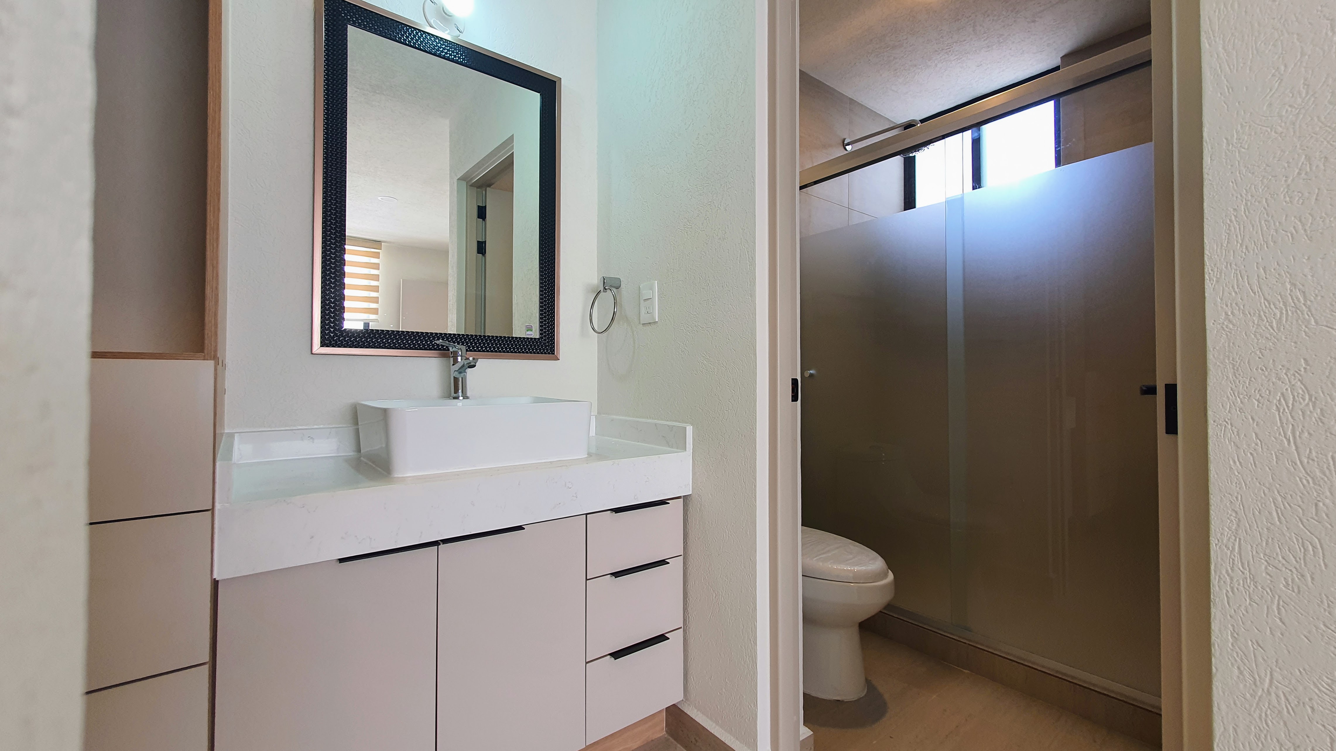 La casa cuenta con 3 recámaras, área de TV, 2.5 baños, doble altura en sala, amplio cuarto de lavado, estacionamiento techado, persianas, canceles de vidrio y espejos en baños, mosquiteros y puerta lateral de acceso.